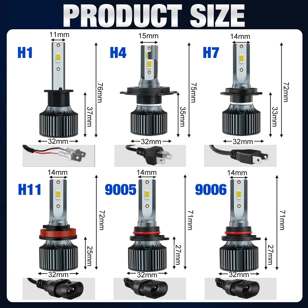 Sockets available: H1 H3 H4 H7 H11/H9/H8 9005/H10/HB3 9006/HB4 9012/HIR2
