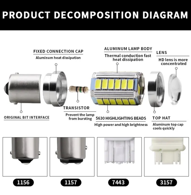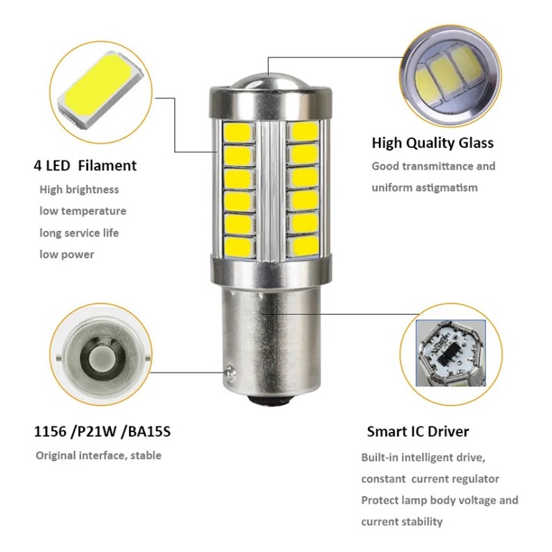 Keedo 33SMD P21W 1156 Car Led Bulb 12V White Yellow Red Auto Turn Brake LED Light